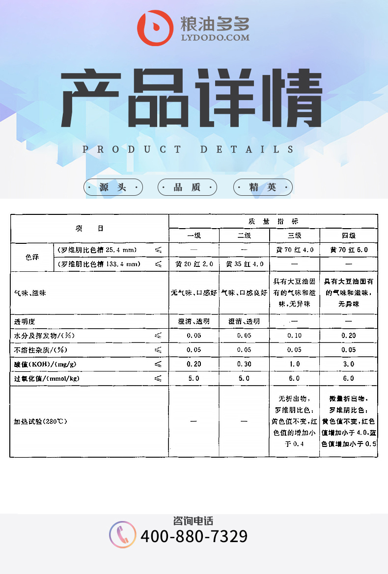 商品名称:三级豆油 日照凌云海 商品货号 : LYDD000116 品牌 : 日照凌云海 产地 : 山东省日照市 产品型号 : 三级豆油 包装规格 : 油罐车散装 等级 : 三级 生产许可证号 : -