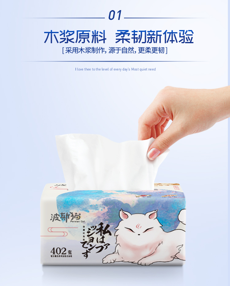 飘合纸业 波斯猫 臻选系列抽纸420张 8包/1提